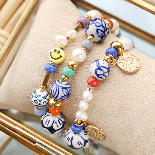 Esta nueva serie de abalorios de cerámica es perfecta para crear una colección de joyas exclusivas. Puede utilizar las cuentas para crear una pulsera, combinándolas con perlas de agua dulce, abalorios disco, cuentas de cristal y colgantes de metal para darle un look fashion. Con un bastón metálico, puedes convertir el abalorio en un colgante, que puede utilizarse para un collar o combinarse con una perla de agua dulce en un pendiente.