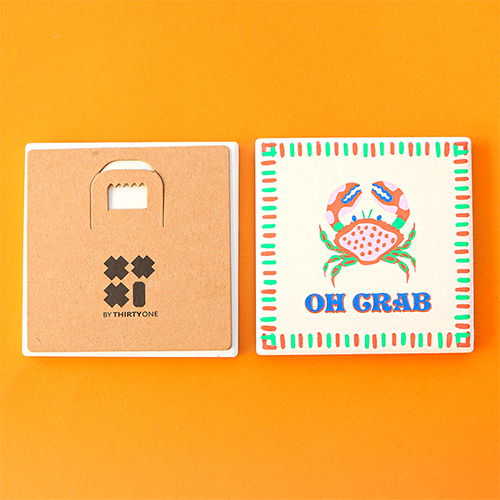 BY31® Azulejo decorativo con frase "Oh crab" Melocotón claro-rojo-verde-azul