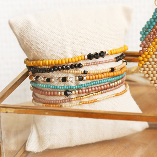 Crear joyas con cuentas Miyuki es súper divertido. ¡Te permiten hacer cualquier cosa! Por ejemplo, puedes usar hilo elástico para hacer fácilmente pulseras con cuentas Miyuki. Una opción es usar diferentes colores de cuentas Miyuki o alternar distintos tamaños. Y también puedes combinar las cuentas con otras, por supuesto. Por ejemplo, los abalorios faceteados. ¡Haznos caso! ¿Te gustan los desafíos? Pues ponte manos a la obra con cuentas Miyuki e hilo Miyuki Beading para crear un precioso colgante con un patrón. ¡Fija este colgante a una fornitura criolla o a un pendiente y tendrás una joya muy llamativa! ¡Buena suerte!