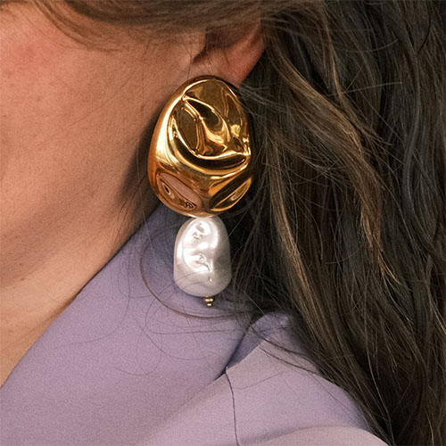 Pendientes resina trendy flor Blanco-dorado