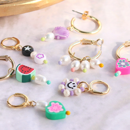 Los nuevos abalorios acrílicos y las fornituras metálicas DQ bastones cabeza bola arcoíris son la base perfecta para crear colgantes y joyería de tendencia. La creación de colgantes es súper fácil. Solo tienes que enfilar diversos abalorios en un bastón metálico y con un alicate de punta redonda haces un ojal. Posteriormente este colgante lo puedes montar en un collar u en otro componente de joyería. Para crear unos pendientes de moda solo tienes que ensartar una perla de agua dulce y un abalorio smiley en un bastón metálico y fijándose después a un componente de pendiente metálico DQ. Hacer colgantes es muy fácil: por ejemplo, puedes colgar varios tipos de colgantes en una pulsera de cadena de eslabones gruesos para conseguir una pieza de joyería vibrante, alegre y a la moda. Para conseguir los colgantes más bonitos, crea combinaciones con abalorios acrílicos smileys y alfabeto, perlas de agua dulce, cuentas de cristal rocallas y de polímero.