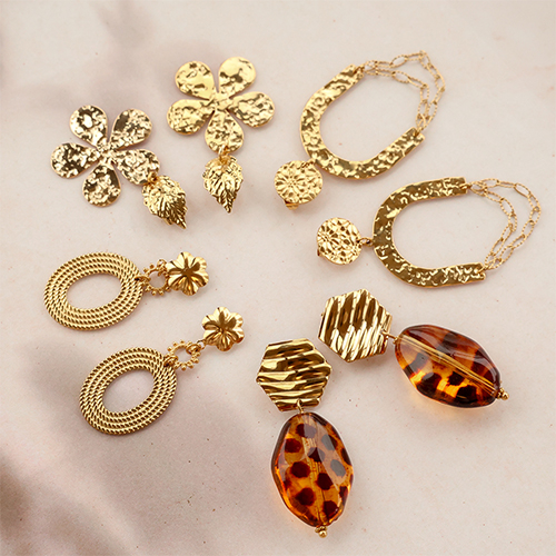Fornituras acero inox pendientes flor con anilla Dorado