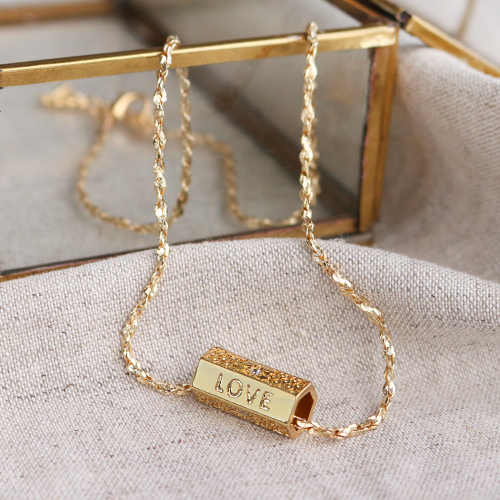 Estos famosos abalorios message beads hexagonal son un placer para la vista y también son muy fáciles de trabajar. Puedes utilizarlas en collares y pulseras, como un simple abalorio, entrepieza o colgante. Como colgante, también se pueden hacer pendientes únicos con ellos. Su gran orificio es muy práctico para trabajar con diferentes materiales de enfilado. Con los materiales de enfilado más fino, puedes utilizar las terminales especiales para garantizar un buen acabado. Combina la joyería message beads C.U.S® con, por ejemplo, la cadena Jasseron, C.U.S® cinta de joyería, piedras naturales o cuentas facetadas.