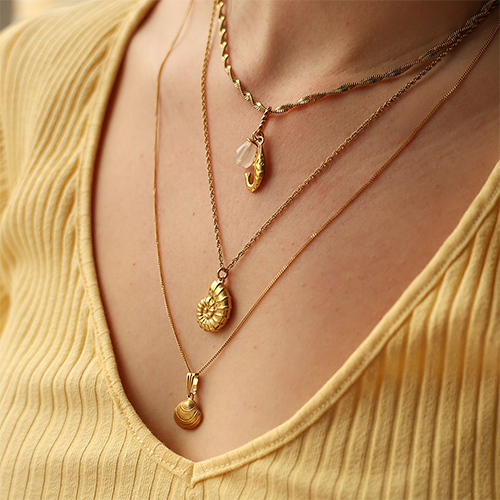¡Estos amuletos de acero inoxidable son una adición perfecta para tu próxima colección de joyas! Elige entre diferentes formas de vida marina como: estrella de mar, concha, caballito de mar y delfín. Incorpora los colgantes a un juego de collares, largos y superpuestos, o apuesta por una pulsera llamativa de eslabones.