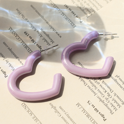 Pendientes trendy corazón Púrpura lila-revestimiento pearl shine