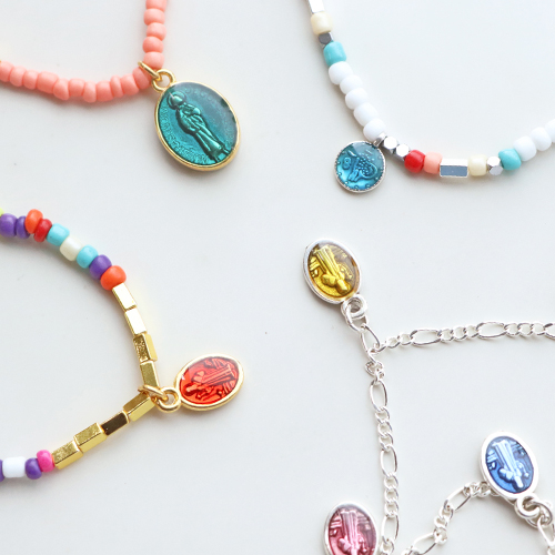 ¿Buscas inspiración para crear preciosos collares en capas? Echa un vistazo a esta colección de colgantes metálicos DQ con epoxi. Crea una gran variedad de collares ensartando, por ejemplo, cuentas rocallas en diferentes colores y montando un colgante en medio de las cuentas con ayuda de una anilla. También puedes utilizar varios colgantes a lo largo del collar. Cuando se trabaja con minicuentas, se recomienda utilizar un tapete para las cuentas. Para enhebrar las cuentas más rápidamente, también puedes utilizar un cargador de abalorios Spin-N-Bed. Utiliza un hilo de nylon y un protector de hilo antes de colocar el cierre para protegerlo. Para hacer un collar de cadena Jasseron con colgantes es muy fácil, y los dijes quedan muy bien. Termina los collares con un bonito cierre y coloca una cadena de extensión para ajustar la longitud.