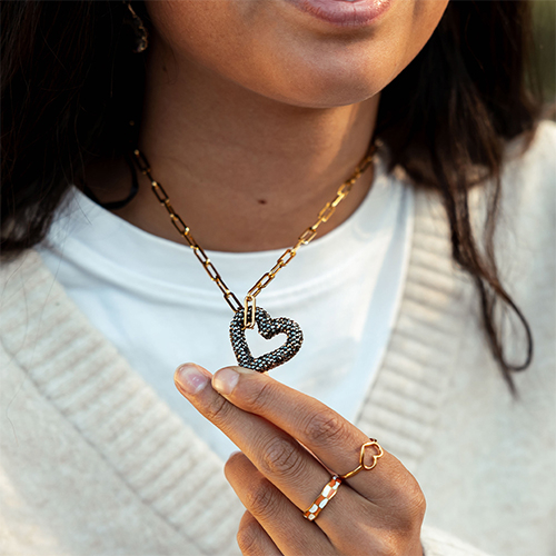 ¡Este otoño se trata de combinar! Crea un llamativo colgante de bolso, llena tu collar con charms de moda, agrega una cinta Bandana divertida y completa tu look con nuestros pendientes únicos, diseñados por nuestro propio equipo. ¡Descubre cómo personalizar tu colección de joyas para un estilo de otoño único y llamativo!