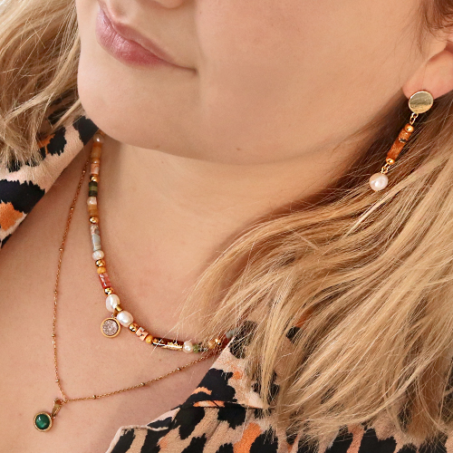¡Echa a volar tu imaginación con esta estupenda colección de piedras naturales en formas de disco y tubo! Estabamos tan entusiasmados con estas piezas, que hicimos diferentes propuestas como pulseras, collares y pendientes. Debido a la naturaleza de este artículo decidimos fusionarlo con otros elementos para resaltar su belleza y brillo. Para esto hicimos uso de abalorios metalicos DQ redondos y perlas de agua dulce. ¡El resultado os encantará!