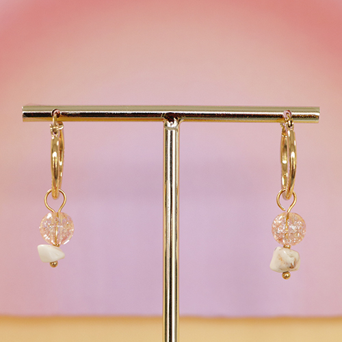 Para diseñar unos lindos pendientes con estos abalorios de cristal, puedes utilizar como punto de partida unos pendientes base o pendientes criollas/aro. Enfila las cuentas de cristal en las criollas/aros grandes y, para conseguir un bonito efecto, altérnalas con unas pequeñas chafas de acero inoxidable doradas. Puedes hacer pulseras combinando los abalorios de cristal con piedras naturales y conchas. Utiliza hilo de macramé de color dorado o una cadena jasseron gruesa y termina con un bonito cierre de reasa marinera.