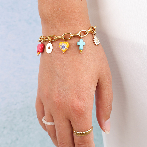 Colgantes Acero Inox margarita esmalte Dorado-blanco
