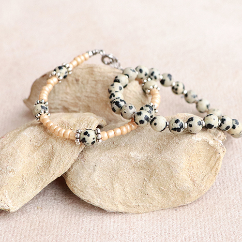 ¿Buscas inspiración para tu próxima colección de joyas? Estos abalorios de piedra natural seguro que te inspiran. Crea hermosos collares combinando las piedras naturales con los abalorios DQ y las cuentas de rondel de piedra natural para hacer un colgante utilizando un bastón metálico. Completa el collar con una extensión de cadena. Para hacer collares, te recomendamos usar el práctico tablero de cuentas para determinar la longitud correcta del collar. Haz pulseras con hilo elástico o hilo macramé y combina piedras naturales con perlas de agua dulce y abalorios DQ o de acero inoxidable.