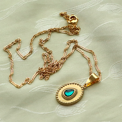 Colgantes Acero Inox irregular con piedra natural Dorado-verde melón