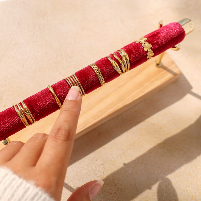 Expositor de joyería almohadilla terciopelo para anillos Magenta púrpura-dorado