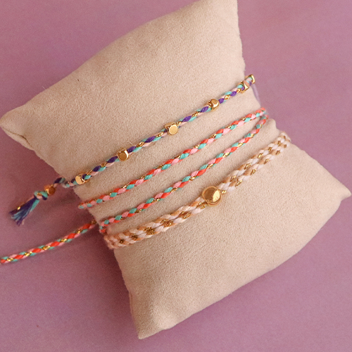 Cordón trenzado trendy 2mm Dorado-rosa azul neón