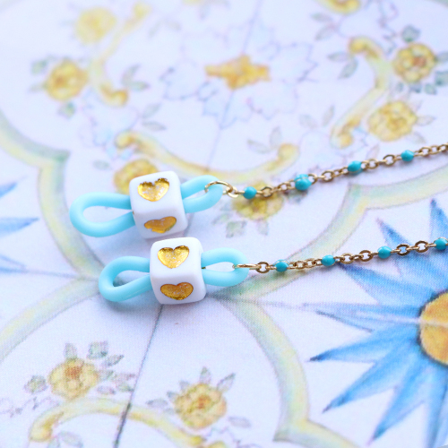 • Fornituras Acero Inox cadena jasseron 1mm Azul turquesa-dorado