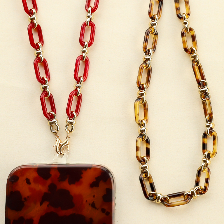 Correas de muñeca trendy para móvil en acrílico Marrón dorado-dorado