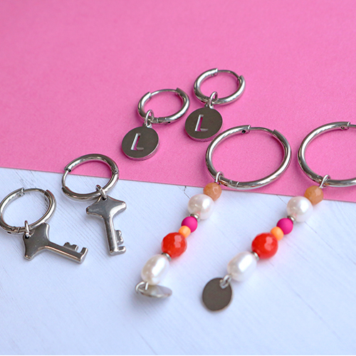 ¿Buscas ideas en las que inspirarte para los pendientes de la próxima temporada? En este set de inspiración, hemos creado diversos pendientes aros/criollas de acero inoxidable, los cuales son ideales para creaciones personalizadas. Por ejemplo, puede deslizar una impresionante piedra natural facetada en el pendiente. También puedes optar por una entrepieza en forma de corazón. Estas prendas son fácilmente intercambiables, por lo que puedes utilizar los pendientes aros/criollas como base y cambiar de estilo cada día. Conecta la cadena Jasseron de varias longitudes a una anilla y convierte tu pendiente en una pieza de joyería de súper tendencia. También puedes ensartar varias cuentas alternas en un bastón metálico y luego deslizar el bucle que vas a crear en el extremo superior sobre la criolla utilizando unos alicates de punta redonda. ¡Para un look chic, puedes utilizar rocallas de varios colores y perlas de agua dulce!