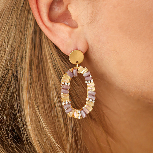 Colgantes faceteados óvalo Lila-transparente-dorado