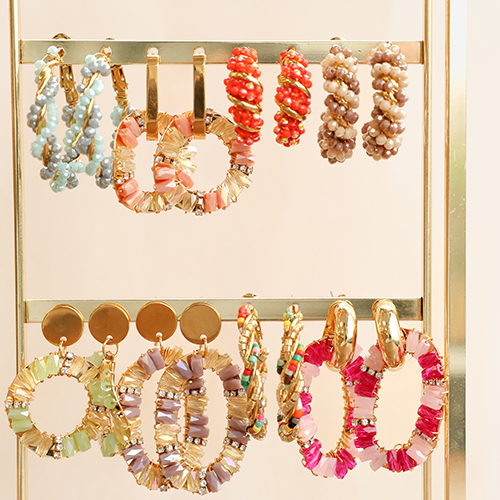 Pendientes Trendy abalorios espiral Multicolor-dorado
