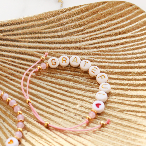 Abalorios letras acrílico mix blanco off-dorado