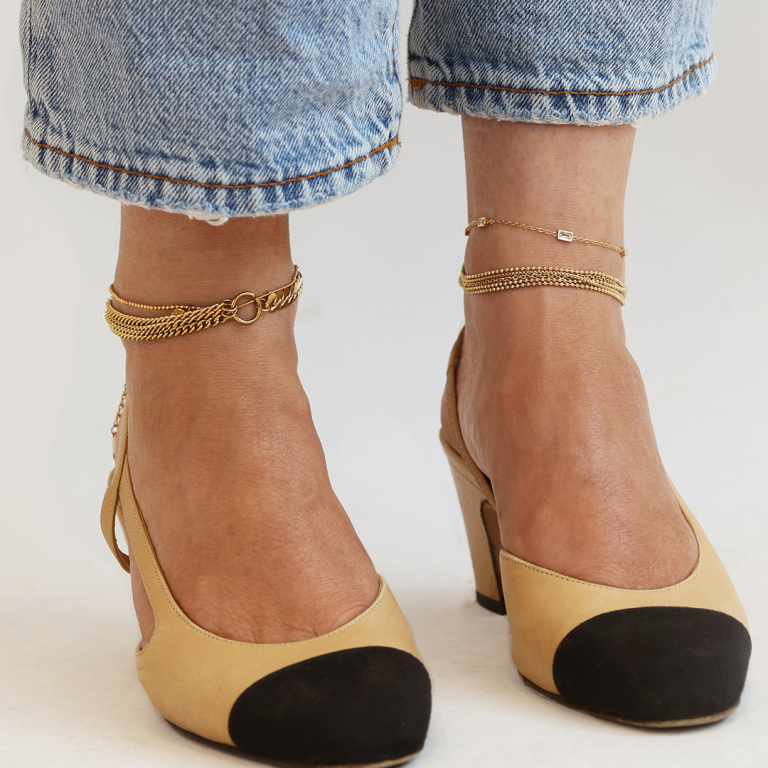 • Pulseras tobillera Acero Inox múltiple capas Dorado