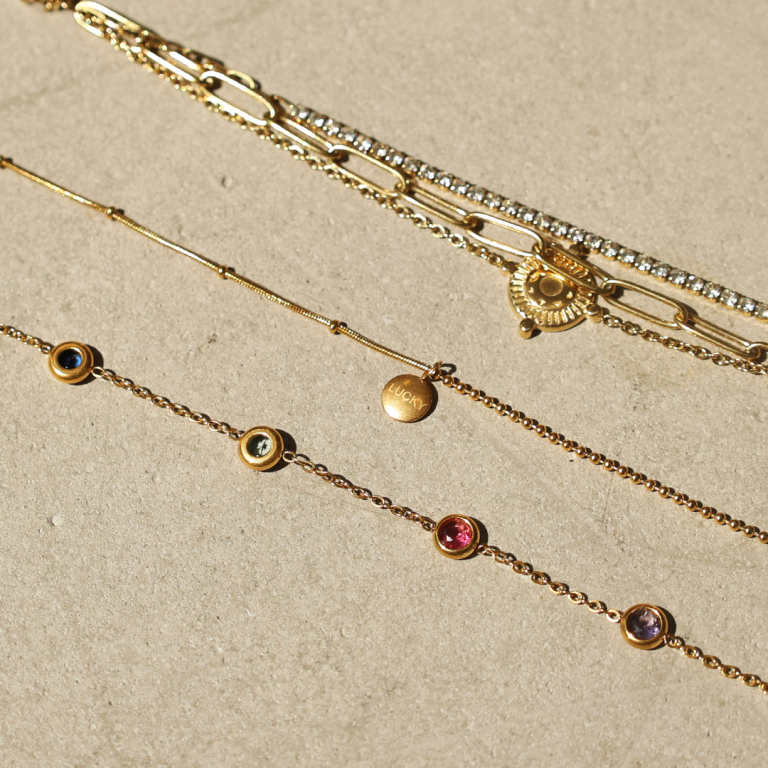 Esta gama de tobilleras y pulseras listas para llevar es un gran complemento para tu colección de verano. Las pulseras y tobilleras son de acero inoxidable, de modo que son resistentes al agua. ¡También son perfectas para combinar con bisutería hecha por ti!