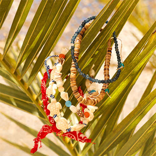¡Empieza hoy mismo a crear tu colección de joyas veraniegas para hombres! Apuesta por estilos playeros y crea collares en capas con cuentas de concha, bambú oceánico y piedras naturales. ¿Prefieres algo más llamativo? Diseña llaveros funky con pañuelos, colgantes vistosos y abalorios de acero inoxidable. O dale un toque más atrevido a tu colección con pulseras y collares plateados ya listos. ¿Qué estilo vas a incluir en tu colección este verano?
