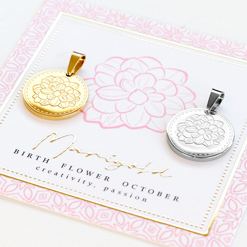 Mix & Match colgantes Acero Inox 15mm Flor de nacimiento Octubre-Caléndula Plateado