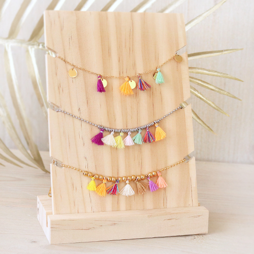 ¡Con estas borlas de colores, el sol entra directamente en tu casa! Las borlas son el artículo perfecto para animar la joyería y darle un toque veraniego. También puedes colgarlos en cualquier pieza de joyería, como pendientes, pulseras y una cadena. Con la famosa cadena jasseron puedes crear tu propio collar y crear una llamativa pieza central en medio de borlas y, por ejemplo, cuentas de acero inoxidable. Para hacer los pendientes a la moda necesitas fornituras para pendiente base que se ajusten a tu estilo y luego simplemente decoras con borlas.